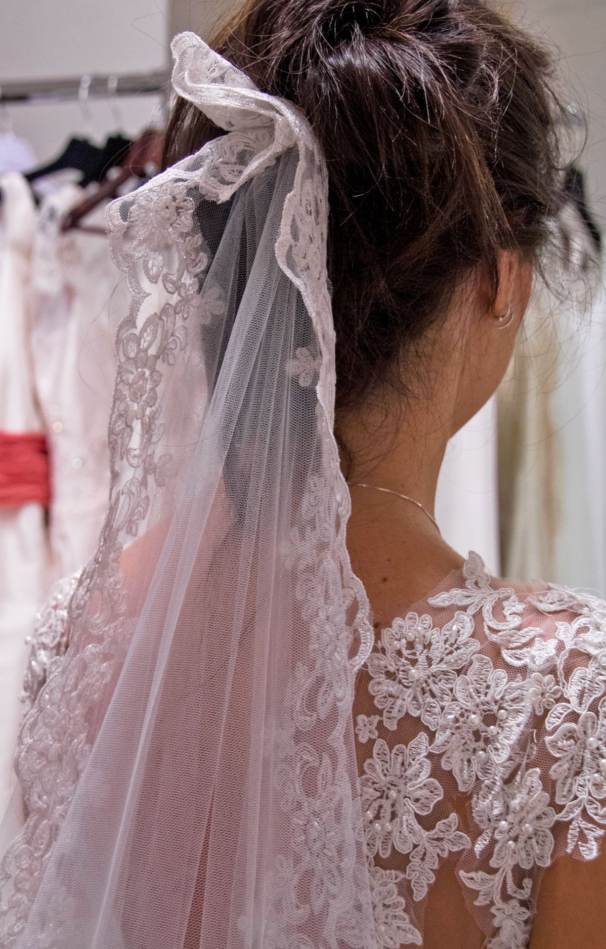 El velo, complemento clave, se diseña tras las primeras pruebas, aunque también puedes optar por peinetas, horquillas u otros accesorios.